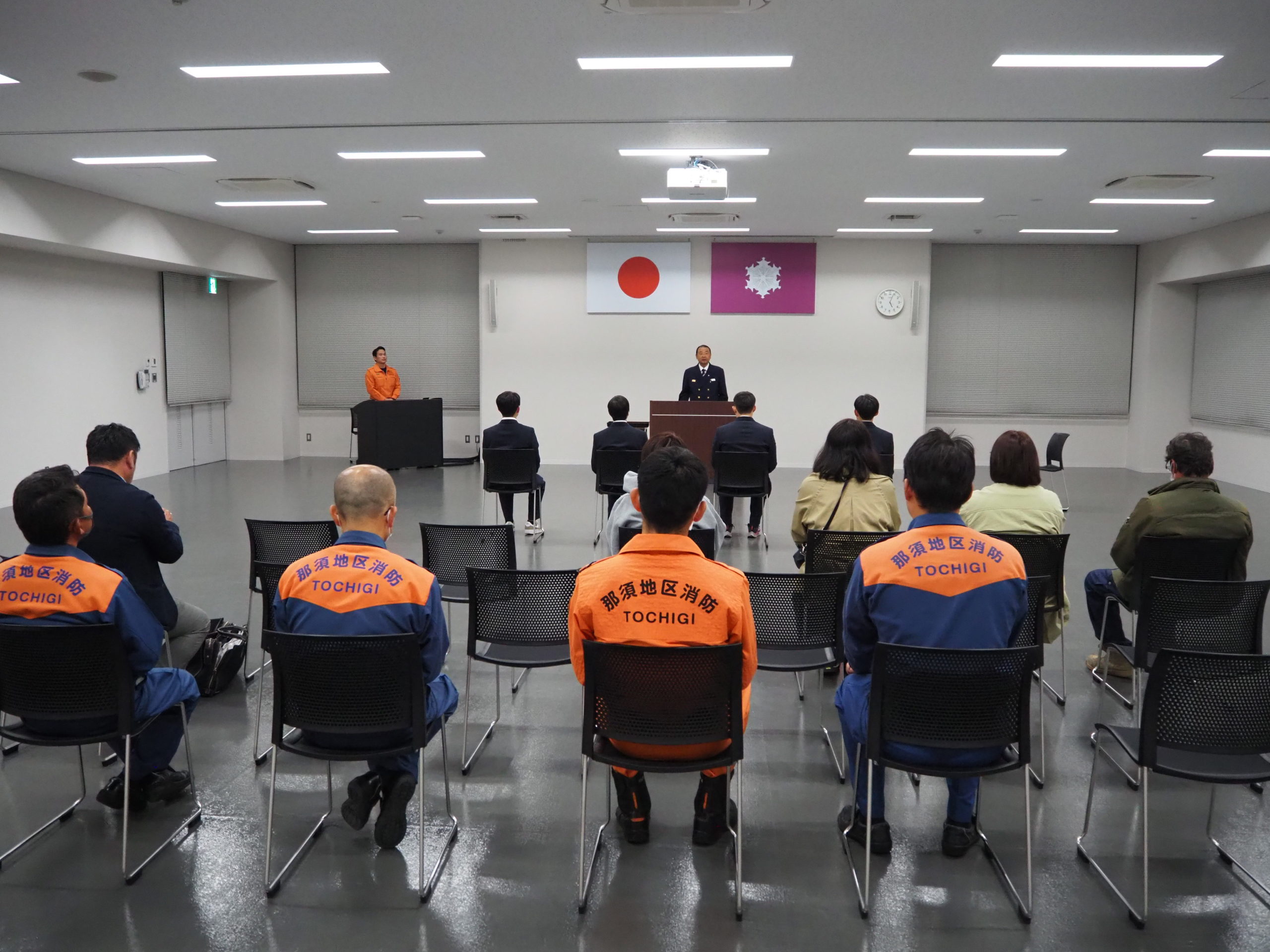 那須地区消防組合はその功労を称え、黒磯消防署長から感謝状の伝達と記念品の贈呈をいたしました。